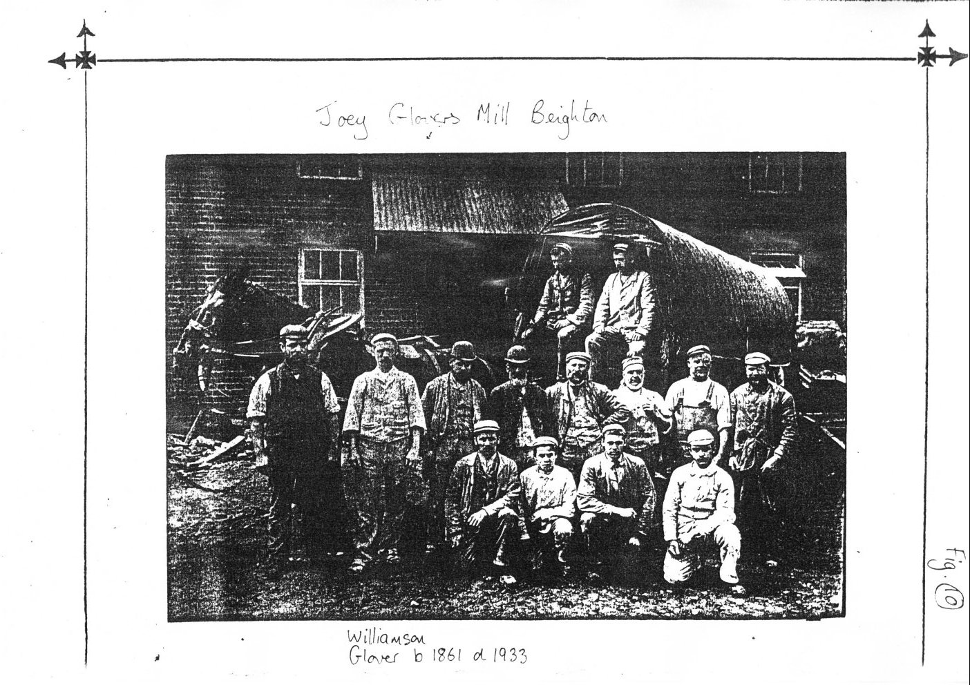 [group photograph featuring Williamson Glover b1861 d1933, at Joey Glovers Mill, Beighton. ]