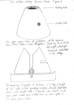 The discovery of a Quern Stone at Beighton is evidence of mans earliest known civilisation in the area. Mr. G. Mirfin made the find in a ditch at Robin Lane. It is an upper quern stone of gritstone, of the beehive form suggesting a date of Late Iron Age - Early Romano-British (See fig 1).