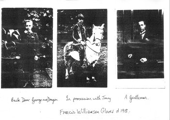 Williamson Glover married Mary Fairburn (Polly) - his cousin. He worked as a corn miller at Joey Glovers Mill in Beighton (see figs 8 and 10) with his father. Polly's sister Eleanor was married to the Licensee of the George and Dragon Hotel, Beighton, a Mr Harry Hutton. When they left to take the Marquis of Granby at Bamford Derbyshire, Williamson and Polly took the 'George' (see fig 11). They had 3 children, Hilda, Annie and Francis Williamson. Polly reared ponies and showed them locally. Francis (Frank) used to ride Jonny the grey pony in processions and carnivals in fancy dress at Whitsuntide in the village. Mr and Mrs Glover used to visit Bedgreave in their pony tub [?] or trap with a grey horse Birdie. Frank was killed in the 1914-18 war just before the armistice. Hilda Glover married John Ward a joiner at the 'Salt house' making ammonium sulphate for export during 1914-18 war. He was an athlete and footballer who lived with relatives in Woodhouse. There is a road named after him [ John and Hilda would be my great-grandparents - but sadly the story about the road being named after him appears to be just that, a family story. Enquiries with the council to determine the truth or otherwise of this indicated the road was likely named after a different John Ward, a local builder. ].