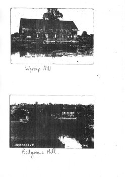 [These are pictures in the document that while not labelled as such I have since been able to identity are of Bedgreave Mill itself. Clearer versions of some these pictures are also available elsewhere on the internet, and some of them reproduced later in this transcription, but the 'originals' from the transcribed document are included here for completeness.]