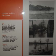 The mill from at least the mid 1800's onwards was a different building. The machinery itself is said to be good quality late 19th Century ironwork. The mill stopped working in approximately 1947 (the steam engine that had powered the mill since the river was diverted many years before froze up and was never repaired). By the 1960's it was derelict. Sometime after it was adopted by Rother Valley Country Park and restored as a visitor centre. It has a public display on its' milling history, reproduced in the photographs below (my thanks to Gareth Horne for providing them).